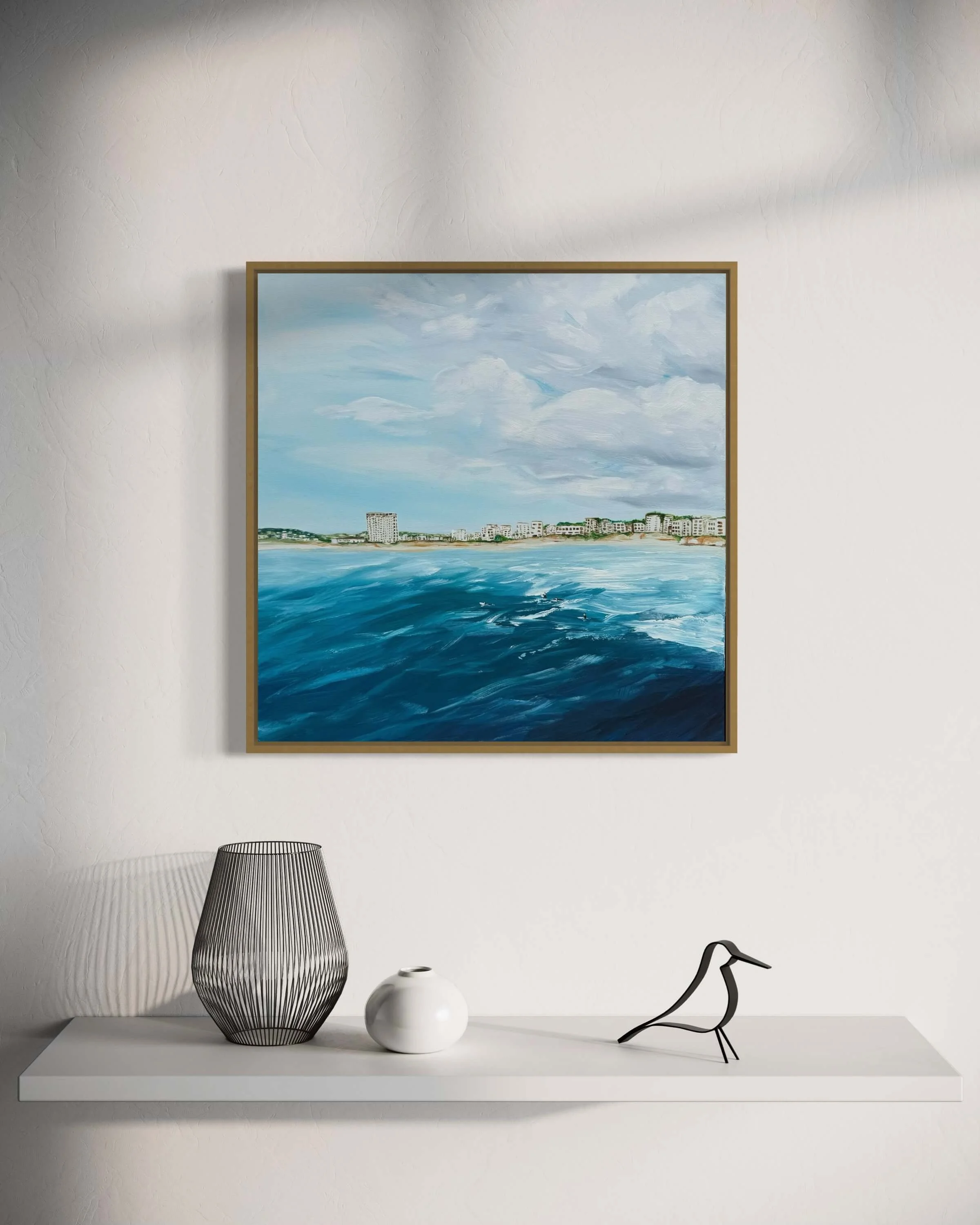 I’m endlessly inspired by the ocean and the California coast. The ebb and flow of the tides mirror the rhythm of life, ever-changing, grounding, and full of beauty in motion. Being in nature is my reset; it keeps me connected to calm, mindfulness, and creativity. What keeps me motivated is knowing that my art can bring that same sense of peace and reflection to others, transforming spaces into sanctuaries of calm.