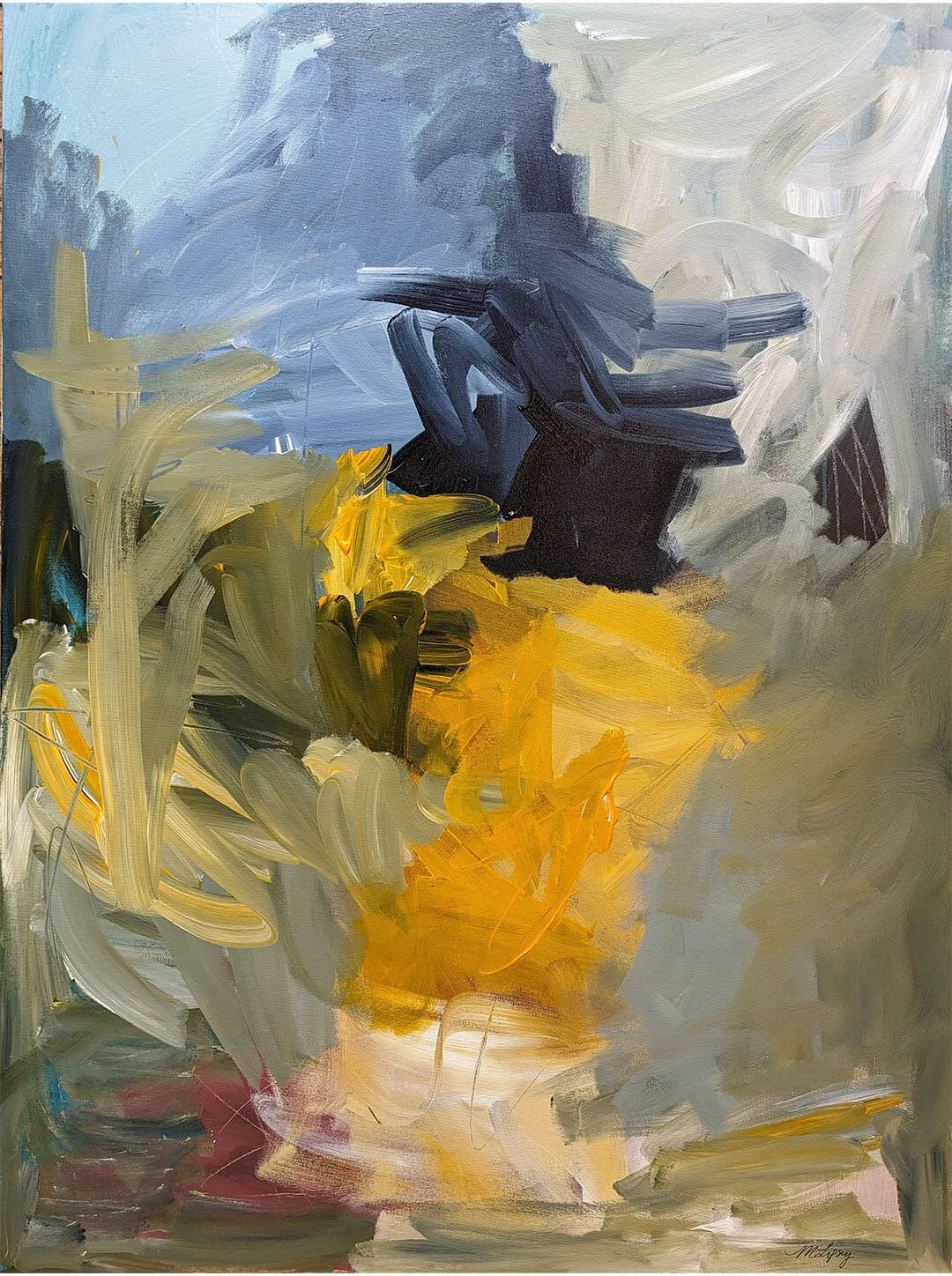 My practice is grounded in emotional translation, taking what’s felt and giving it form through color, texture, and movement. I’m constantly asking: What am I feeling? And how does that feeling move? There’s a rhythm to the studio process, a kind of dance that excites me. But it’s often in the quiet after a piece is finished that I discover the deeper meaning. That moment of contemplation inevitably opens the door to a new inquiry, a new exploration. Curiosity is what drives me; each painting leads to the next, and seeing the work of other artists fuels the question: What could I try next? What haven’t I said yet?
